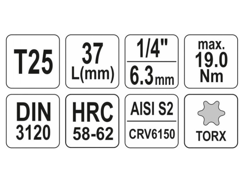 | Torx bit méret | T25 |