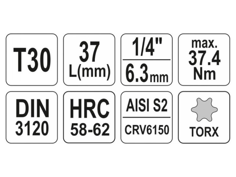 | Torx bit méret | T30 |