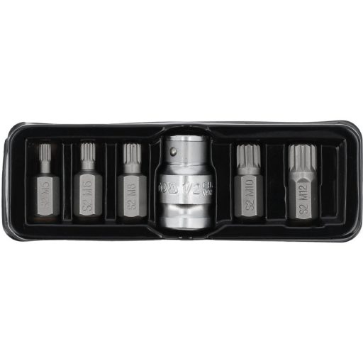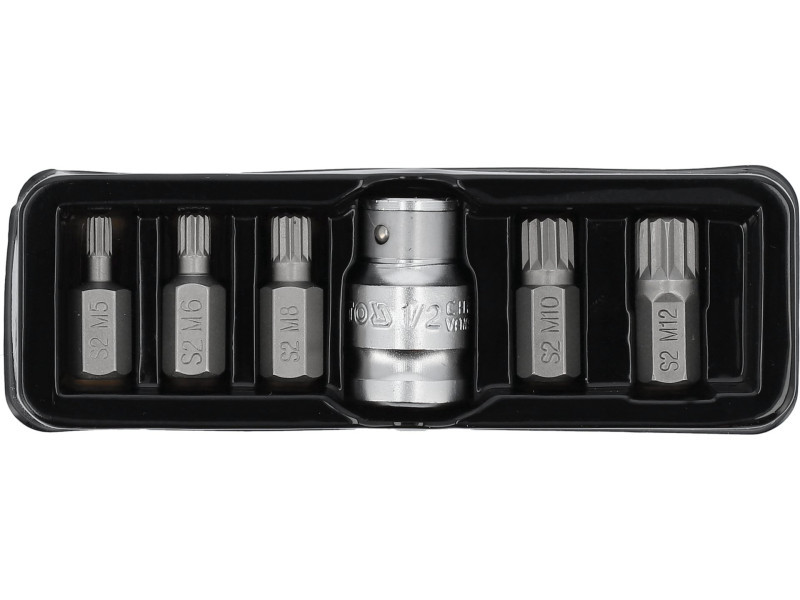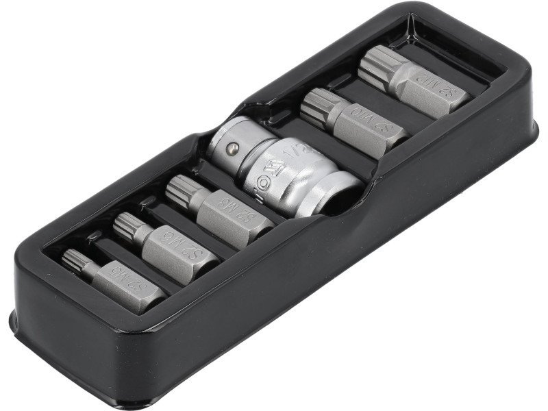 A Yato professzionális készlete, amelyet a csavarcsavarok kicsavarására használnak. A különböző bitméretek biztosítják, hogy a gépészeti és autóipari szakszervizekben a munkák széles skálája elvégezhető legyen. A 30 mm hosszú bitek 10 mm-es hatszögletű tartóba vannak szerelve, 1/2"-es racsnival való használathoz igazítva.