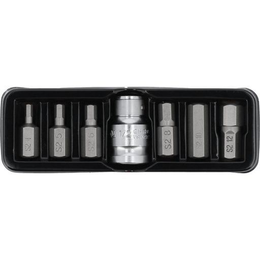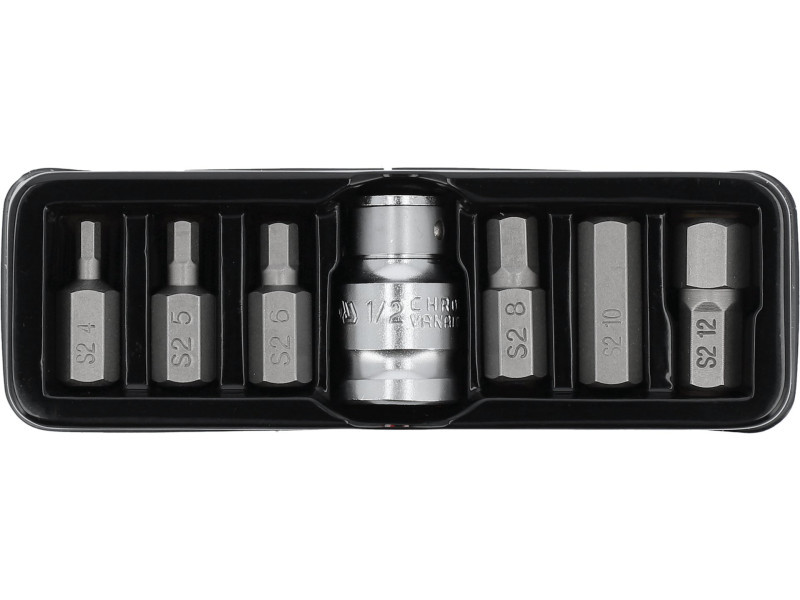 Yato professzionális készlet speciális hatlapos csavarok kicsavarásához. A különböző méretek sokfélesége biztosítja, hogy a gépészeti és autóipari szakszervizekben széles körű munkák végezhetők el. A bitek 30 mm hosszúak, 10 mm-es hatlapos szárba szerelve, 1/2"-es racsnival való használatra igazítva.