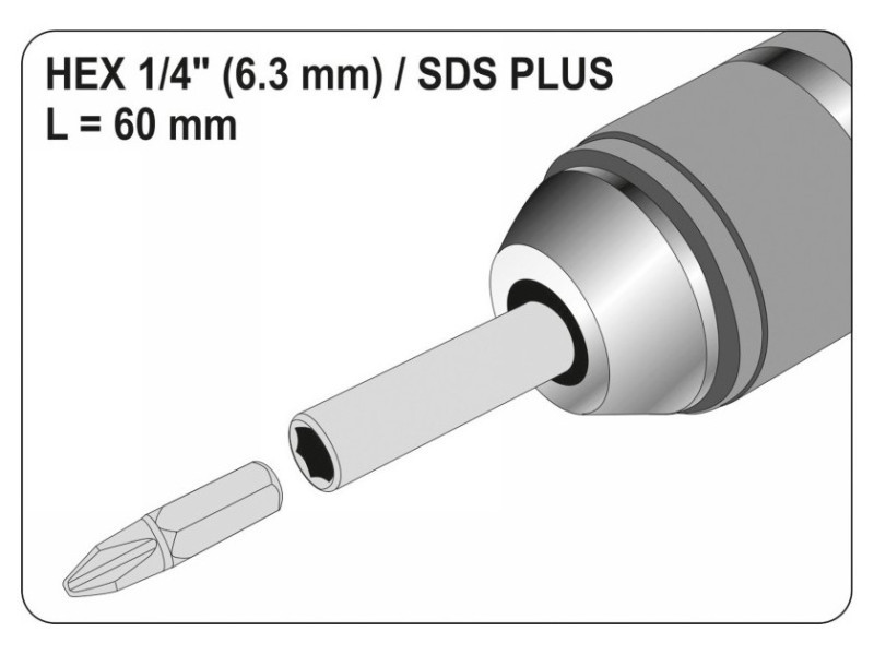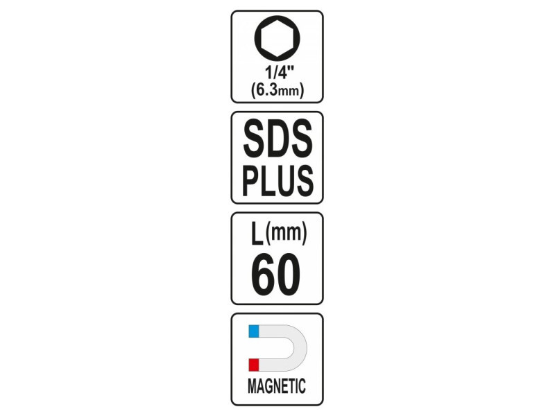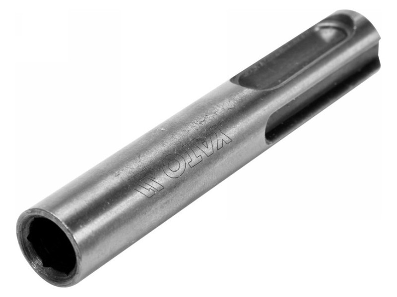 Yato márkájú sds plus-hex adapter. 40Cr acélból készült, a kiegészítő felület oxidált.