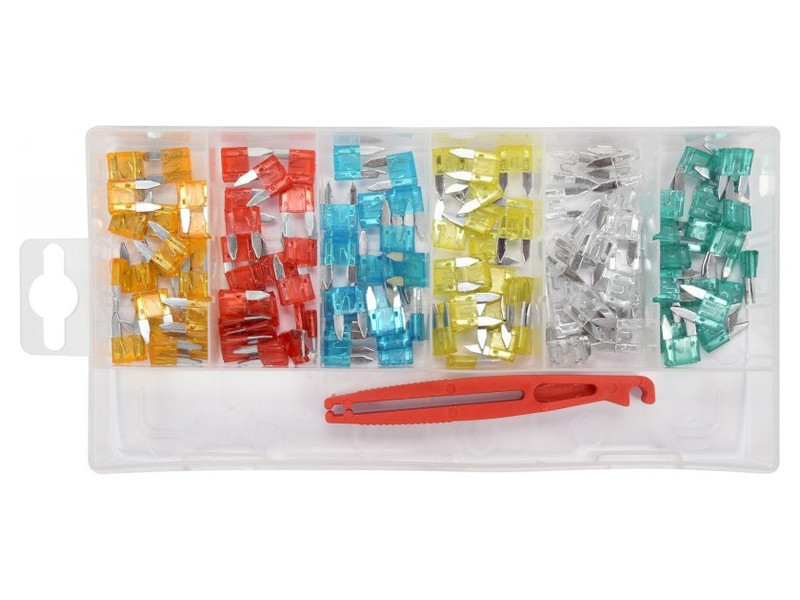 Biztosítókészletek az autók elektromos berendezéseinek védelmére a túlzott áram okozta károktól. Többek között kompresszorokhoz, elektromos szivattyúkhoz, egyenirányítókhoz, aljzatelosztókhoz. Praktikus tokba csomagolva.
