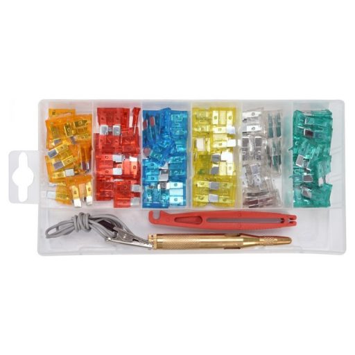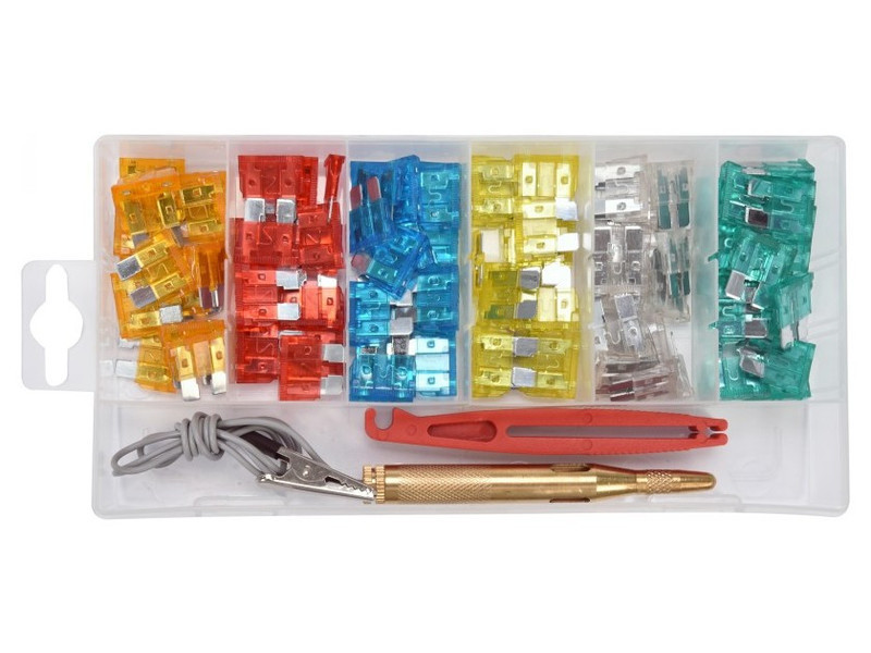 Biztosítókészletek az autók elektromos berendezéseinek védelmére a túlzott áram okozta károktól. Többek között kompresszorokhoz, elektromos szivattyúkhoz, egyenirányítókhoz, konnektorelosztókhoz. Praktikus tokba csomagolva.