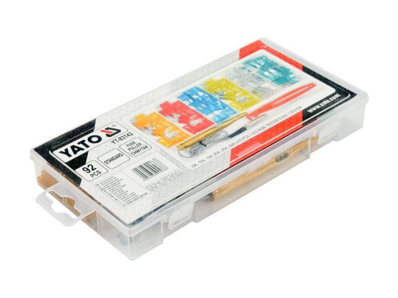 | Állítsa be a tartalmat | biztosítékok x90 (5A x15, 10A x15, 15A x15, 20A x15, 25A x15, 30A x15), feszültségvizsgáló 6-24V, megfogó |