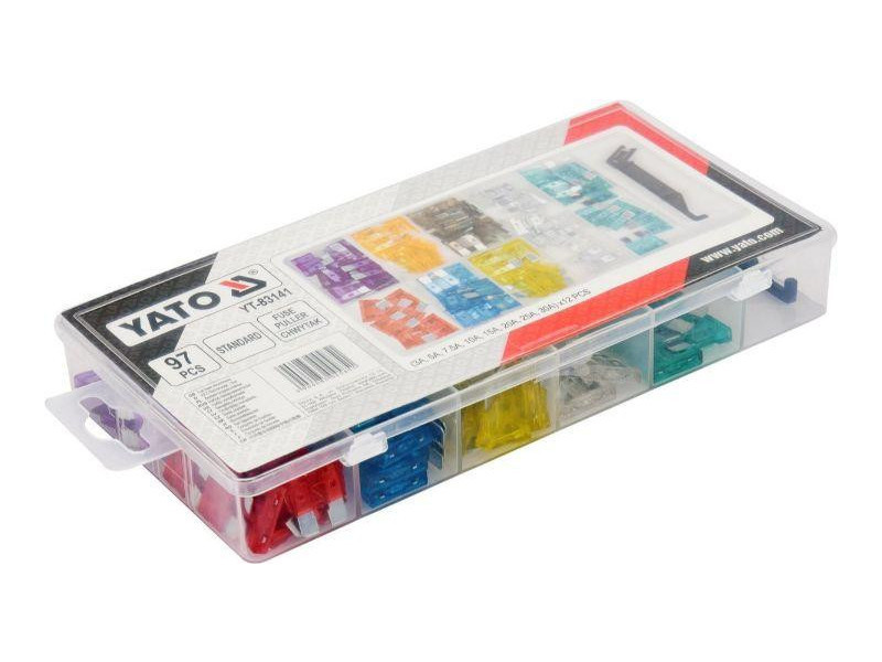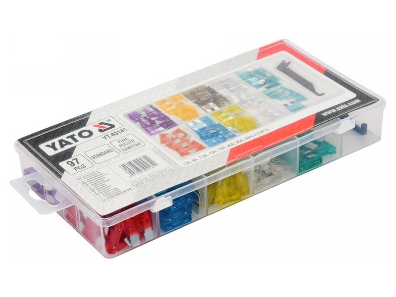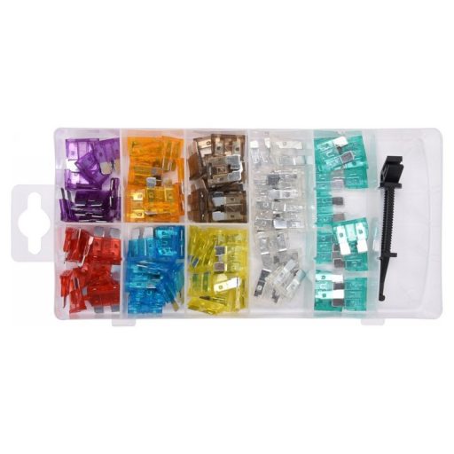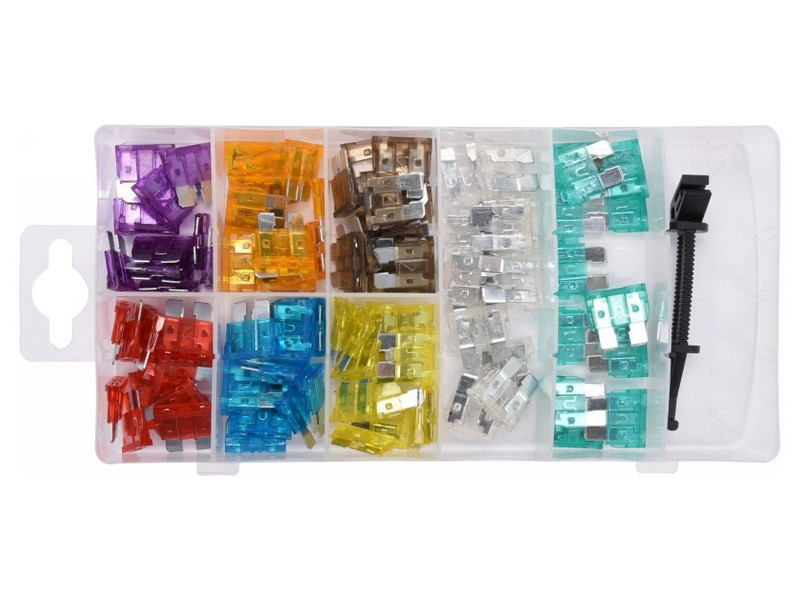 Biztosítókészletek az autók elektromos berendezéseinek védelmére a túlzott áram okozta károktól. Többek között kompresszorokhoz, elektromos szivattyúkhoz, egyenirányítókhoz, konnektorelosztókhoz. Praktikus tokba csomagolva.