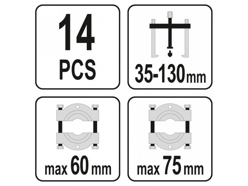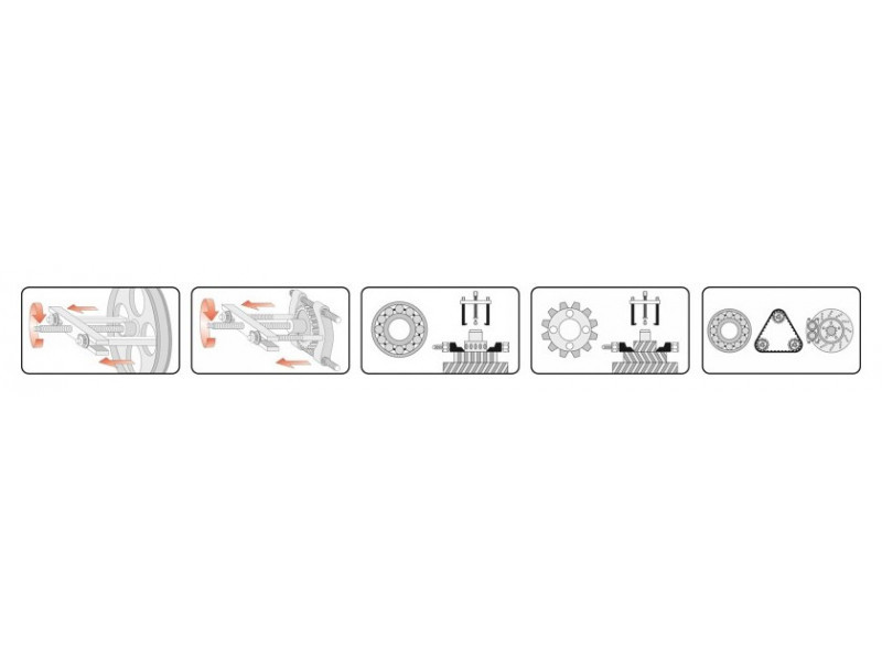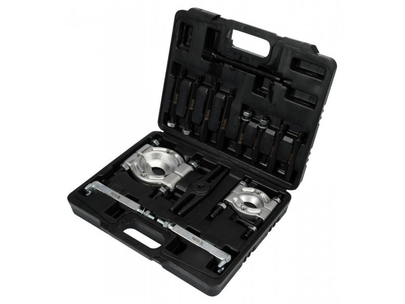 Kétkarú lehúzó a csapágyak, fogaskerekek, féktárcsák stb. leszereléséhez, a szorosan illeszkedő alkatrészek eltávolítását segítő elválasztókkal és egy sor központi csavarral . Szorosan illeszkedő alkatrészek eltávolítását segítő elválasztókkal és egy központi csavarkészlettel. Autóipari és gépészeti szervizek számára ajánlott.
