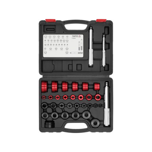 A 33 darabos készletet csapágyak és tömítések leömléséhez tervezték. Hüvelykes és metrikus adapterekből áll.
