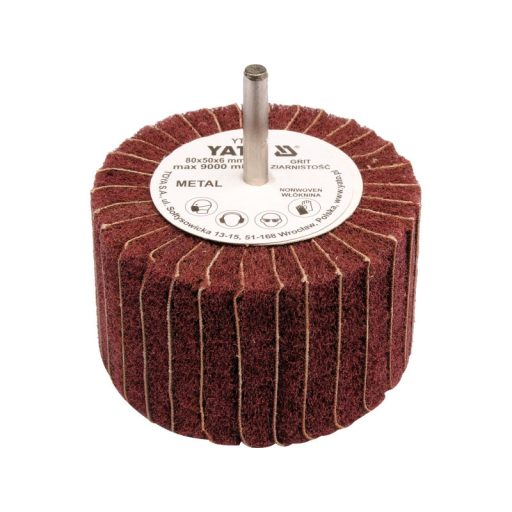 A megmunkáló csiszolóelem csiszolószövetből és nem szőtt polírozószövetből készült lapkákból áll, amelyek állandóan egy acél tüskére vannak szerelve.