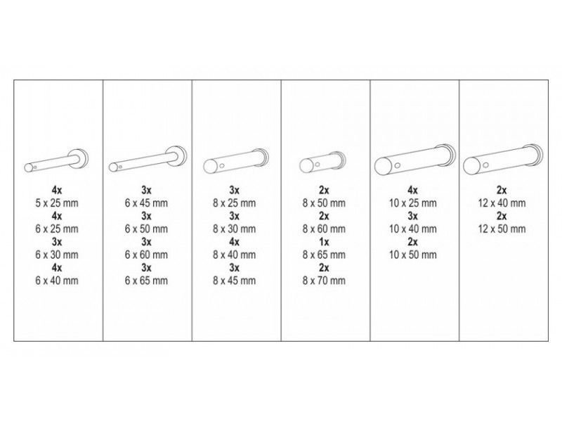 A készlet tartalma folyt.8x60 mm x2, 8x65 mm x1, 8x70 mm x2, 10x25 mm x4, 10x40 mm x3, 10x50 mm x2, 12x40 mm x2, 12x50 mm x2)