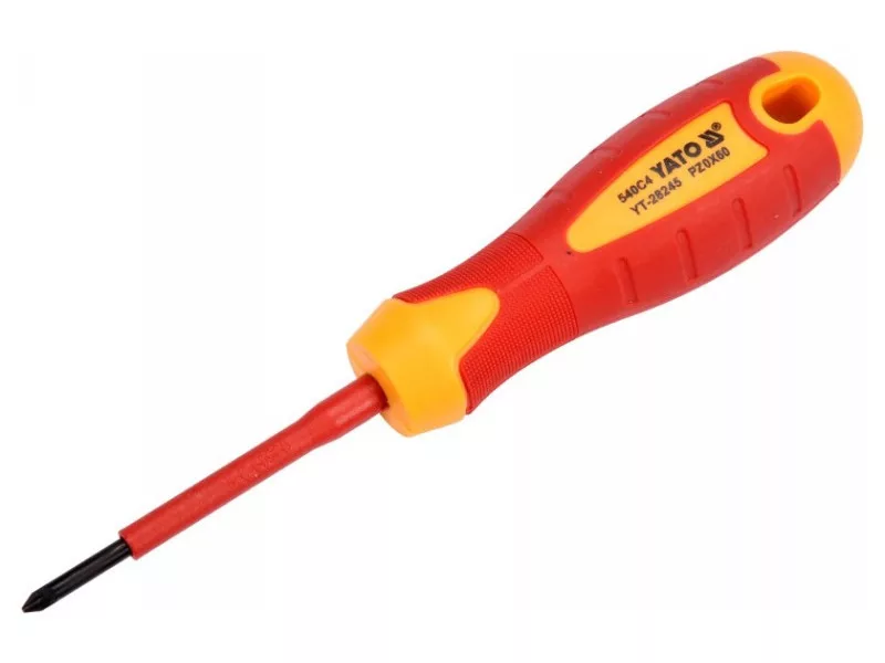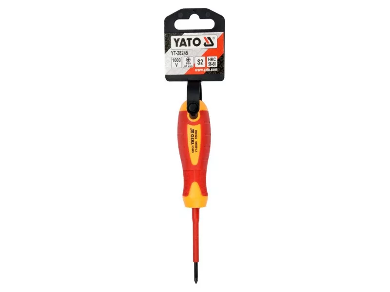 YT-28245 Phillips csavarhúzó VDE szigeteléssel, tartós S2 acélból készült, HRC 56-60 keménységgel.