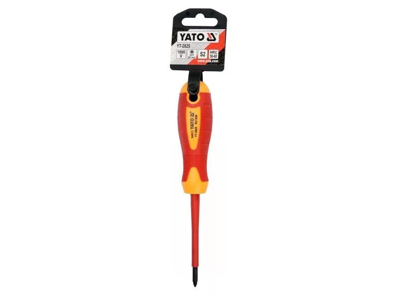 YT-2825 Phillips csavarhúzó VDE szigeteléssel, tartós S2 acélból készült, HRC 56-60 keménységgel.