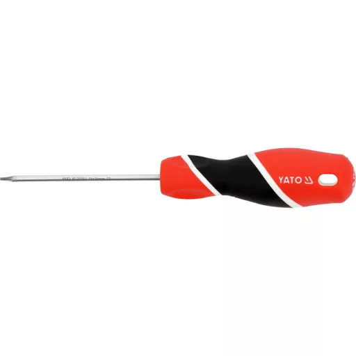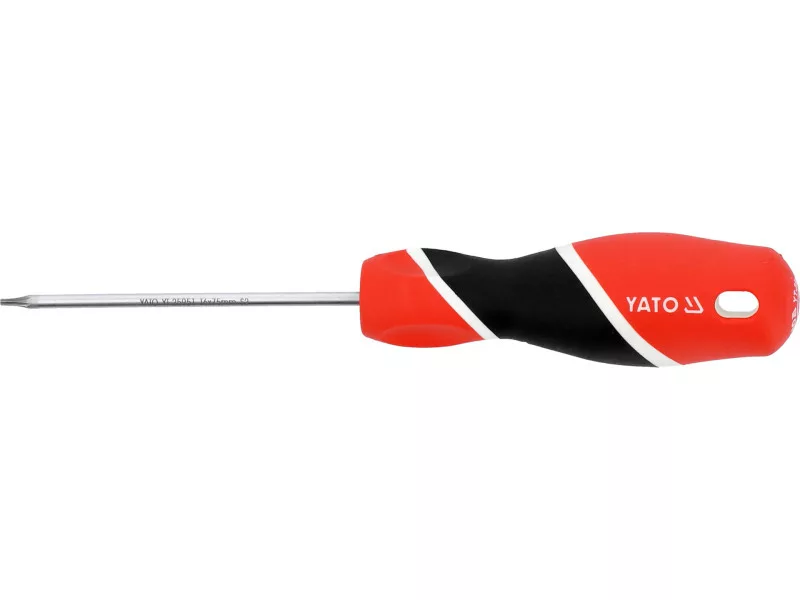 TORX T6x75 mm-es csavarhúzó a YATO-tól S2 acélból készült hengeres szárral, kb. 58 HRC-re edzett.