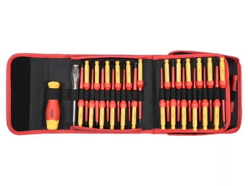 Csavarhúzó + bit készlet 50 részes YT-28293 VDE szigetelt markolattal, pengék tartós S2 acélból készültek, HRC keménység 56-60.