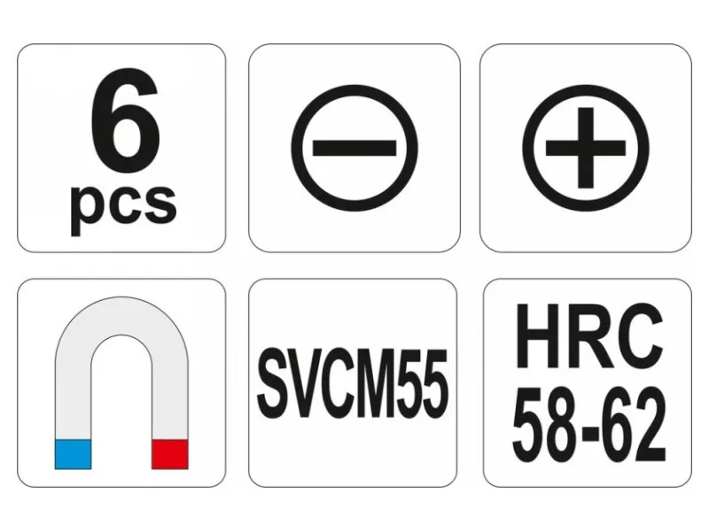 A csavarhúzók pengéje szaténozott, így védve a korróziótól, a penge hegye pedig homokfúvott és mágnesezett, ami biztonságos fogást tesz lehetővé a csavarfejen.