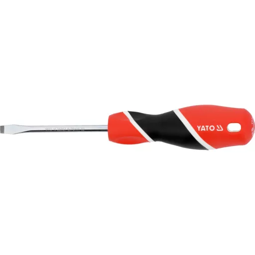 Laposfejű csavarhúzó hengeres szárral, S2 acélból, kb. 58 HRC-re edzett.