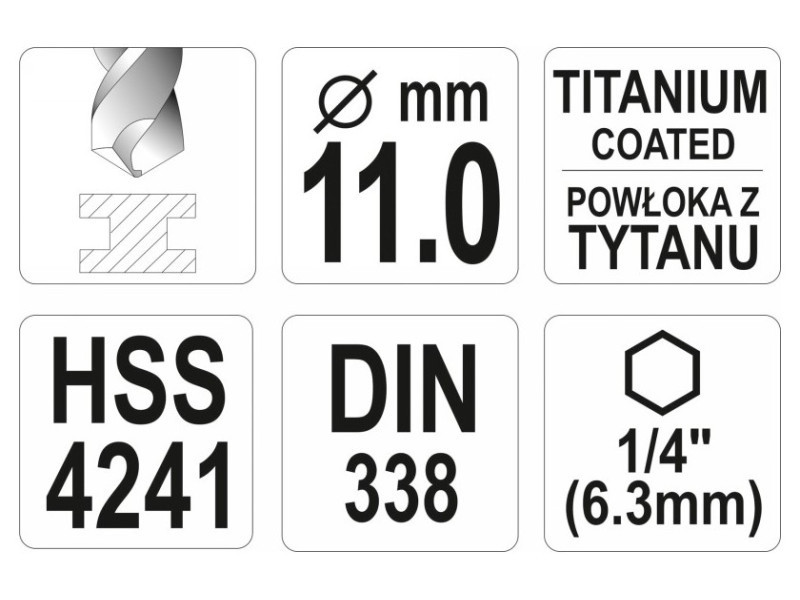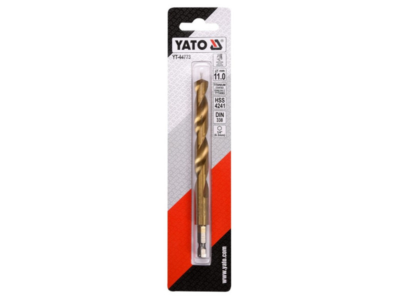 Titánbevonatú fém fúrószár hatszögletű szárral a YATO-tól, nagy sebességű HSS acélból, titánbevonatú.