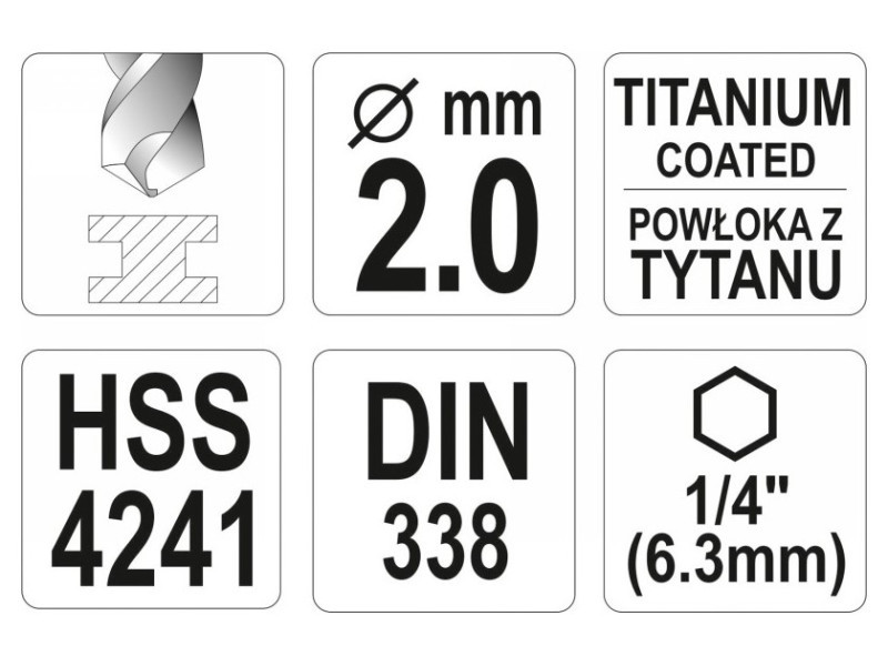 Titánbevonatú fém fúrószár hatszögletű szárral a YATO-tól, nagy sebességű HSS acélból, titánbevonatú.