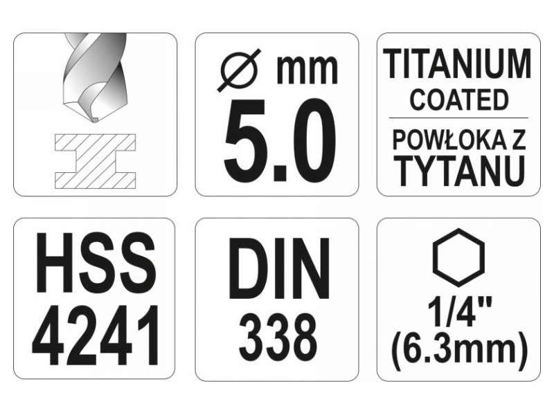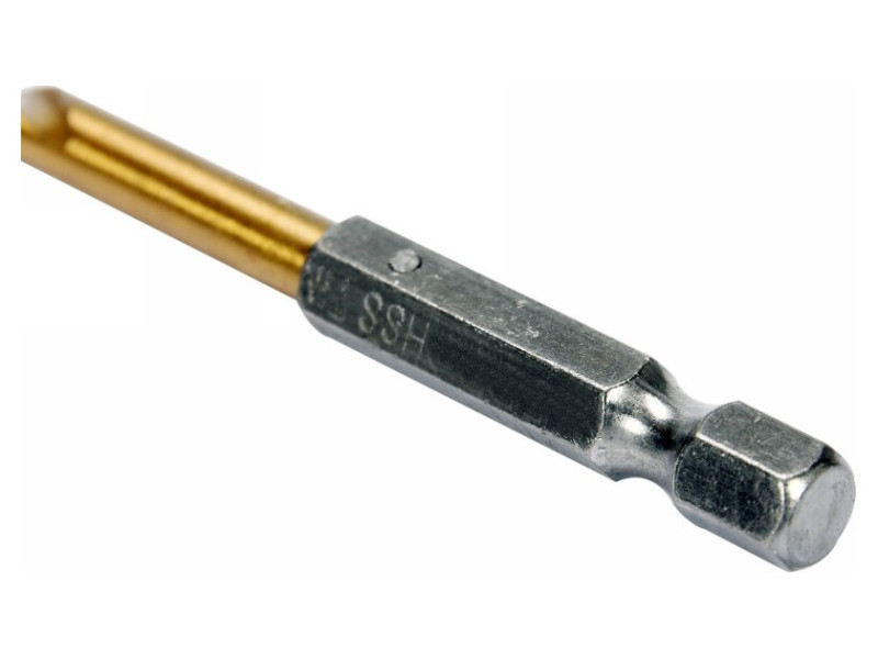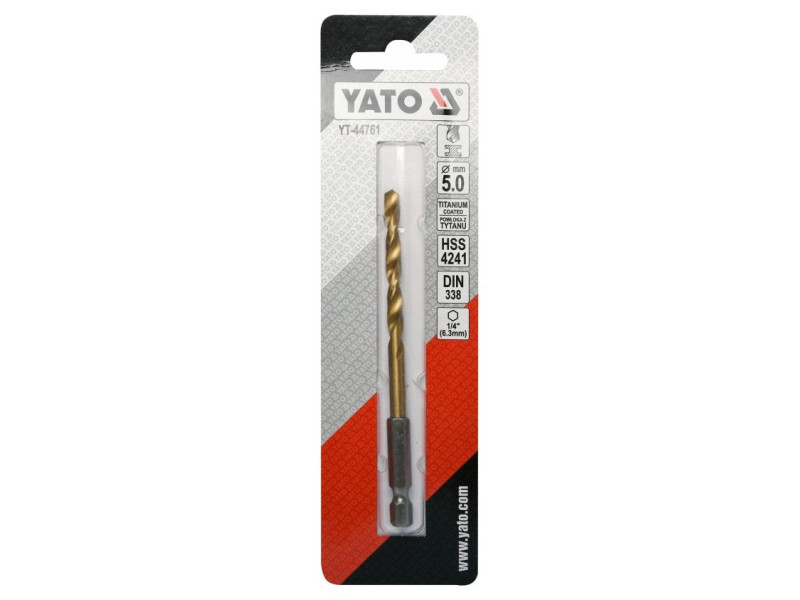 Titánbevonatú fém fúrószár hatszögletű szárral a YATO YT-44761-től, nagy sebességű HSS acélból, titánbevonatú.