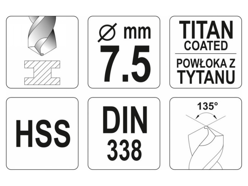 Csiszolt fúrófej agresszív vágóél-geometriával. Titán-nitrid bevonatának köszönhetően nagyon hatékonyan vezeti el a hőt, és nem tompul kemény acélok megmunkálásakor. A penge 135°-os dőlésszöge lehetővé teszi a fúrást hegy előzetes használata nélkül is. A DIN 338 szabvány szerint gyártott, ipari professzionális használatra.