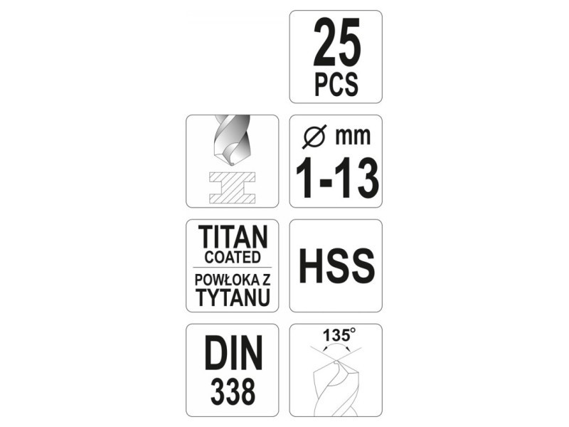 A készlet 25 db fúrószárat tartalmaz, amelyek átmérője: