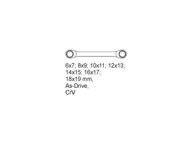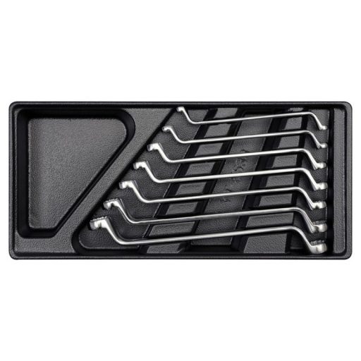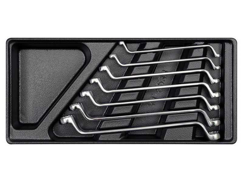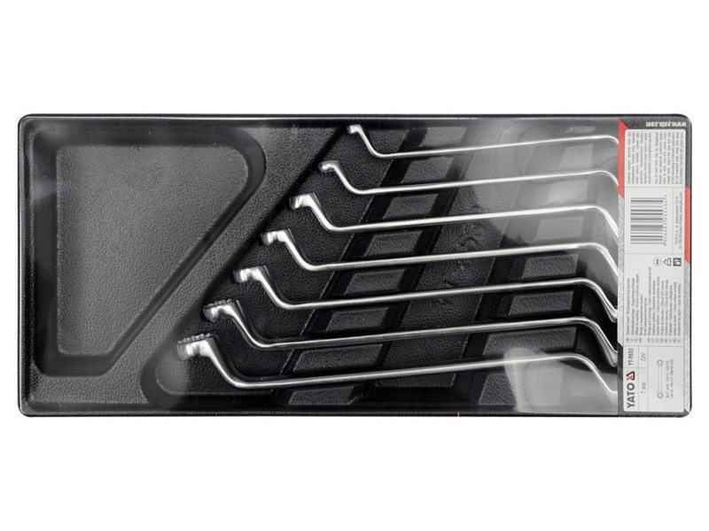 - Hajlított gyűrűs kulcsok: 6 x 7, 8 x 9, 10 x 11, 12 x 13, 14 x 15, 16 x 17, 18 x 19 mm.
