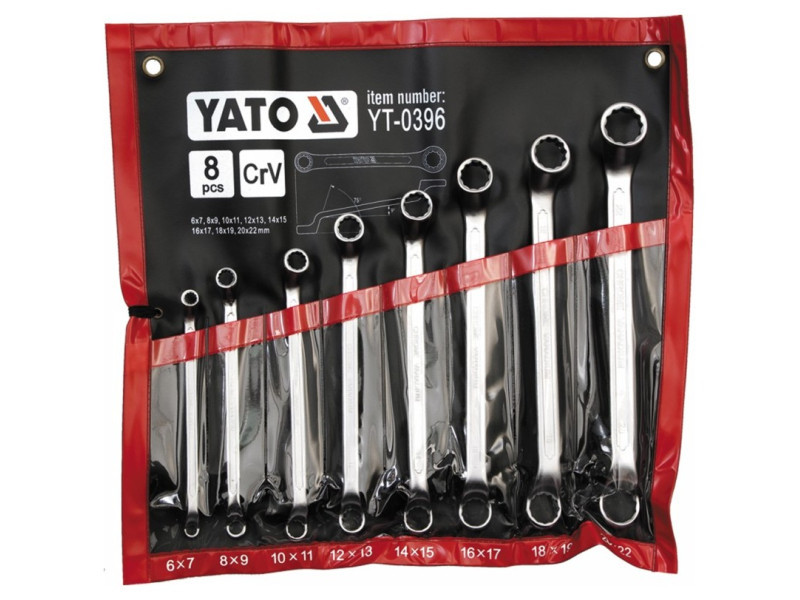 As-hajtással ellátott 8 darabos eltolt gyűrűs kulcskészlet a Yato-tól.
