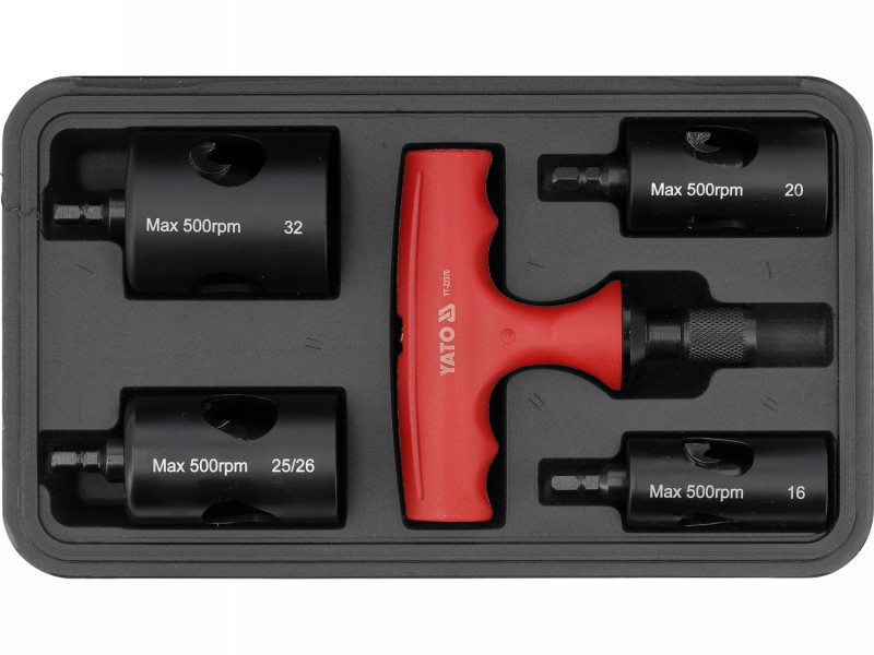Emellett a készlet használható csavarozóval kombinálva, ami felgyorsítja a munkát nagyobb mennyiségű feldolgozás esetén. Ajánlott nem több, mint 500 fordulat/perc sebességgel dolgozni, hogy teljes kontrollt biztosítsunk a kalibrálási folyamat felett, és ne károsítsuk meg a cső éleit vagy az eszközöket.
