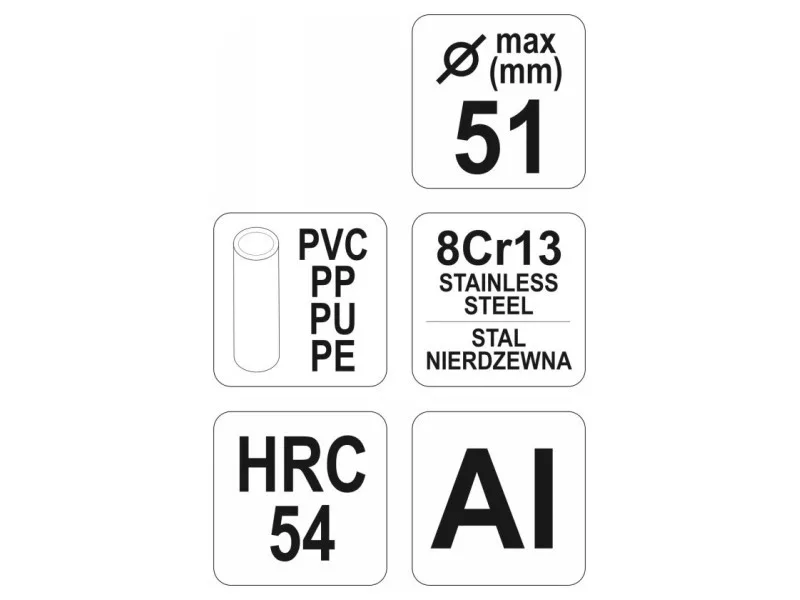 Olló műanyag csövek vágására 51 mm átmérőig.