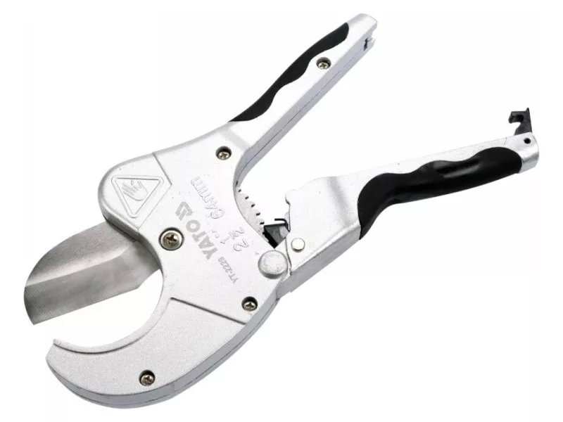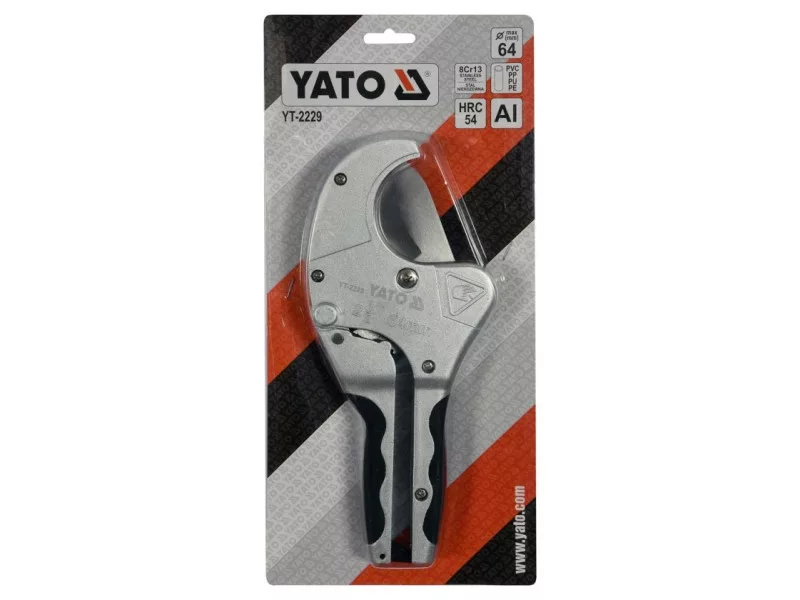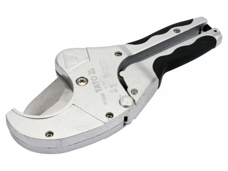 Yato márkájú PVC csővágó. A gumírozott fogantyú, valamint az egyszerű és megbízható alumíniumöntvény test lehetővé teszi a szerszám kényelmes és problémamentes kezelését.