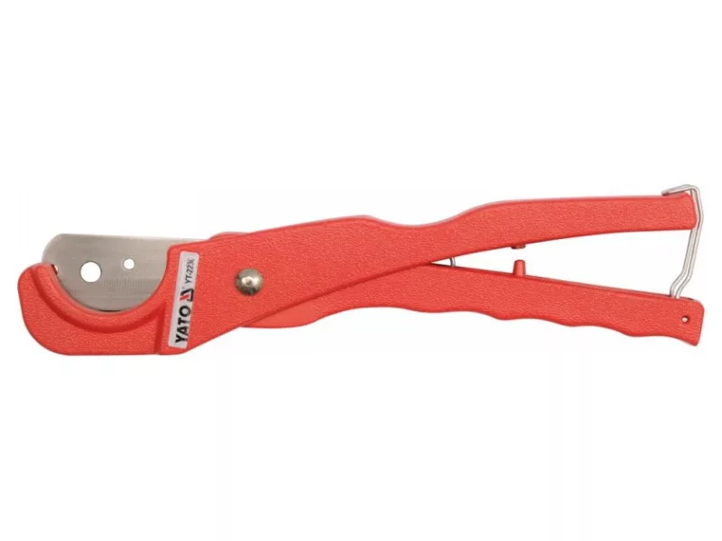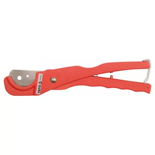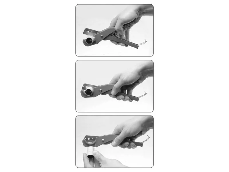 Csőolló műanyag csövek vágására, amely a jól megválasztott pengeformának köszönhetően a falak összenyomása nélkül teszi lehetővé a vágást.