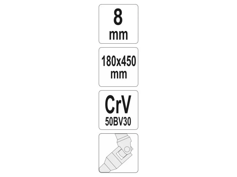 Yato YT-15273 márkájú T-csuklós dugókulcs, nagy teherbírású 50BV30 króm-vanádium szerszámacélból. A gomb lehetővé teszi, hogy a dugókulccsal bármilyen szögben dolgozhasson, megkönnyítve ezzel a munkát.