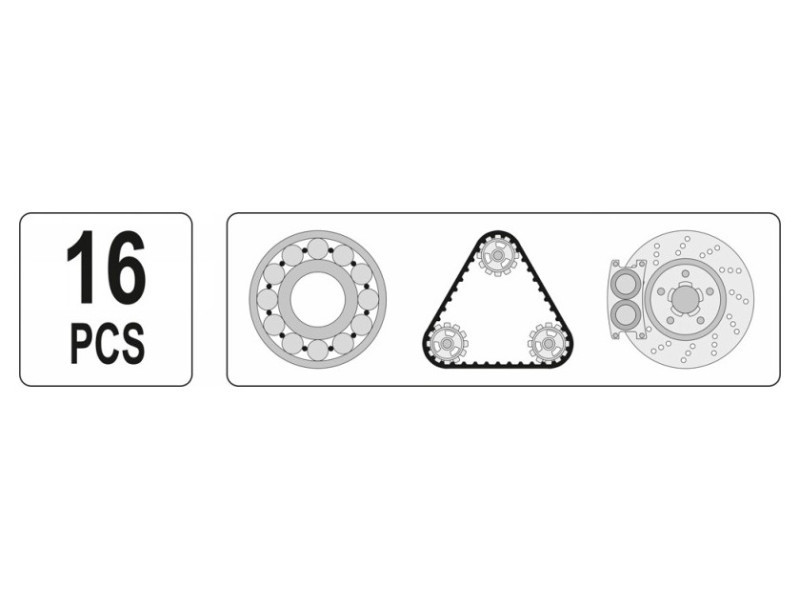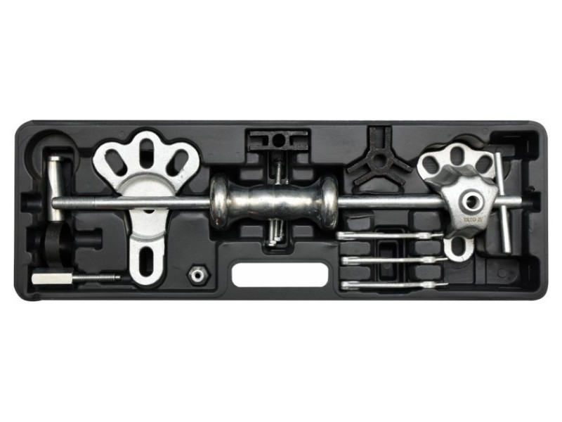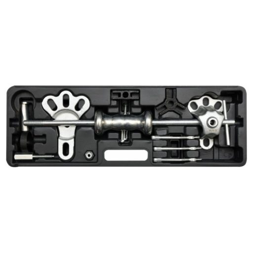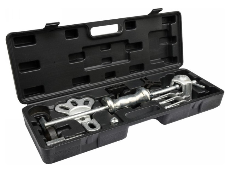 Szerszámkészlet a tengelycsapágyak, csapágyak és fogaskerekek biztonságos szétszereléséhez. A készlet 16 alkatrészből áll, amelyek egy praktikus hordtáskában vannak elhelyezve. Az alkatrészek kiváló minőségű acélból készültek. Mechanikai szolgáltatások, autóipari műhelyek.