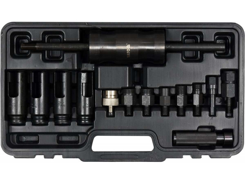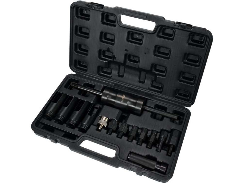 Professzionális tehetetlenségi kihúzó a lefagyott injektorok gyors eltávolításához dízelmotorokon. A lehúzó kialakítása lehetővé teszi a nehezen hozzáférhető helyek elérését.