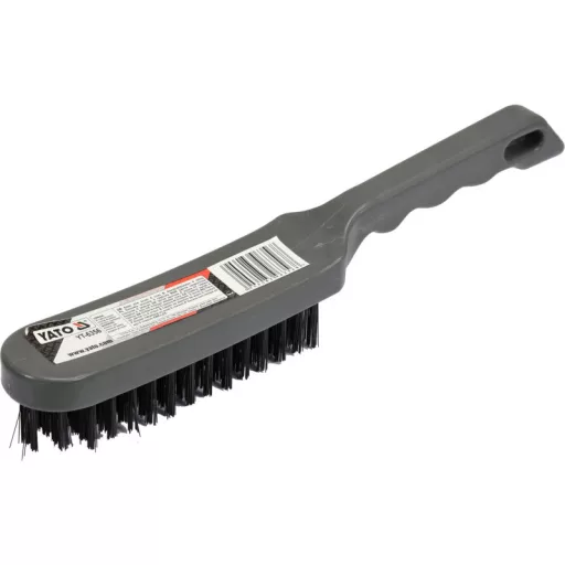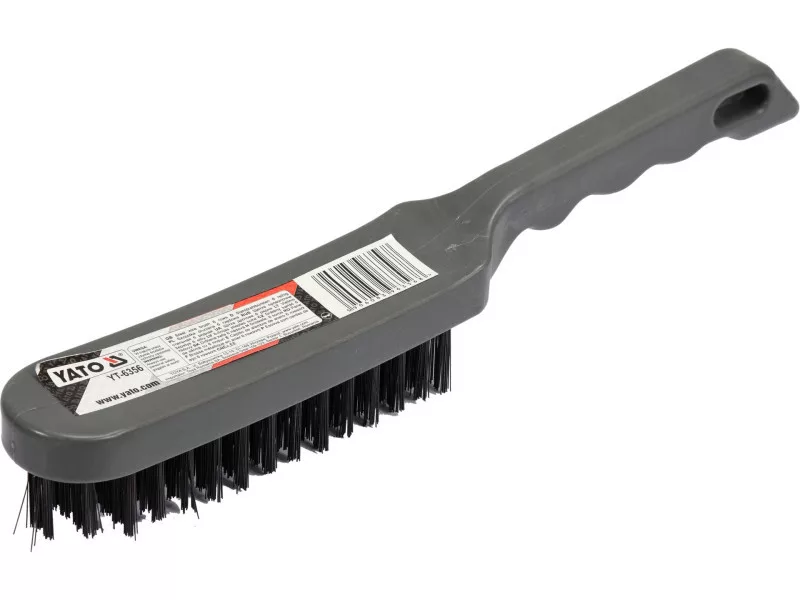 Horganyzott, rugalmas acélhuzalból készült, tartósan műanyag testbe ágyazva. A kefe profilozott a tisztítás hatékonyságának növelése érdekében.