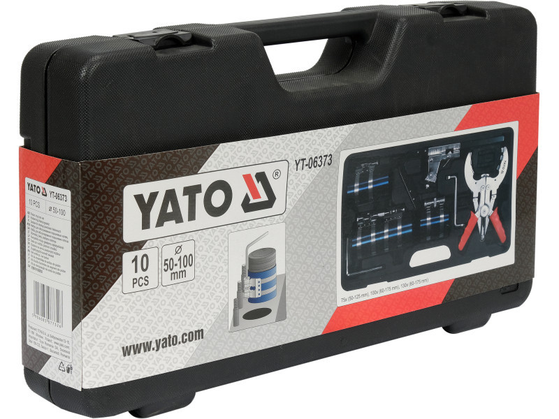 Ezen kívül a készlet 3 dugattyúgyűrűs gyűrűtisztítót is tartalmaz. Ezek nélkülözhetetlen szerszámok az élesített dugattyúk biztonságos beillesztéséhez a motorhengerbe. A krimpelők a következő dugattyúméreteket támogatják: 50-125mm, 60-175mm, 60-175mm. A teljes készlet 10 darabból áll, praktikus hordtáskába csomagolva.