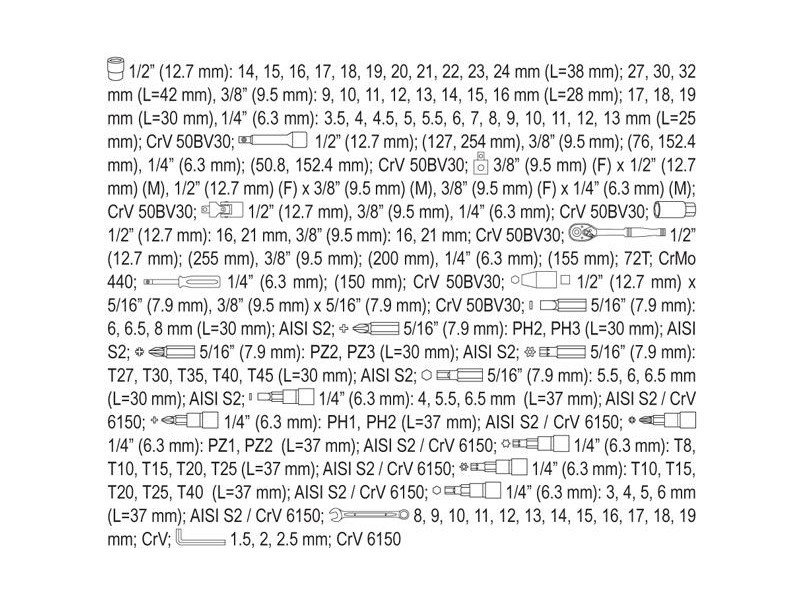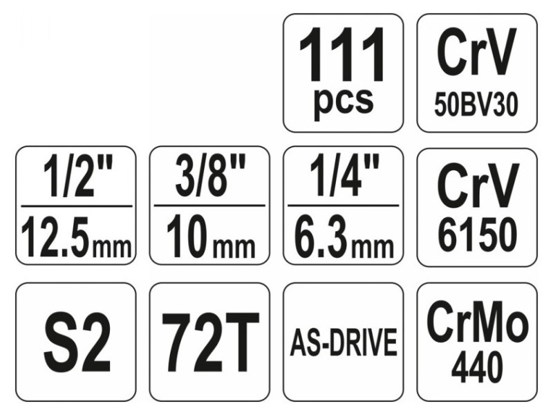 YATO Dugókulcs készlet 111 részes 1/4", 3/8", 1/2" CrV
