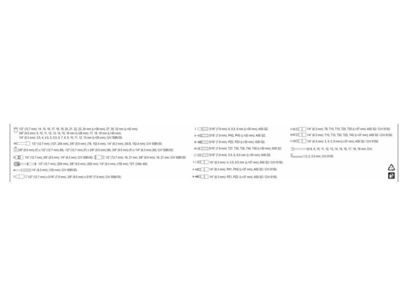 • Szerszámtartó fogantyú mérete: 1/4" (6.3 mm), 3/8" (9.5 mm), 1/2" (12.7 mm)