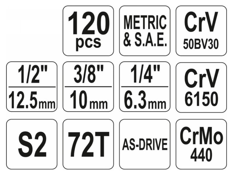 YATO Dugókulcs készlet 120 részes 1/4", 3/8", 1/2" CrV