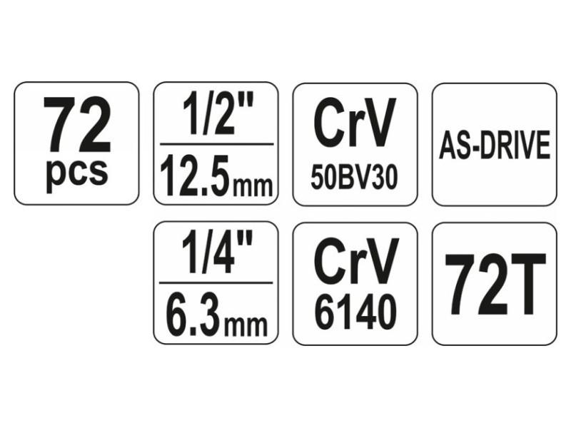 YATO Dugókulcs készlet 72 részes 1/4", 1/2" CrV
