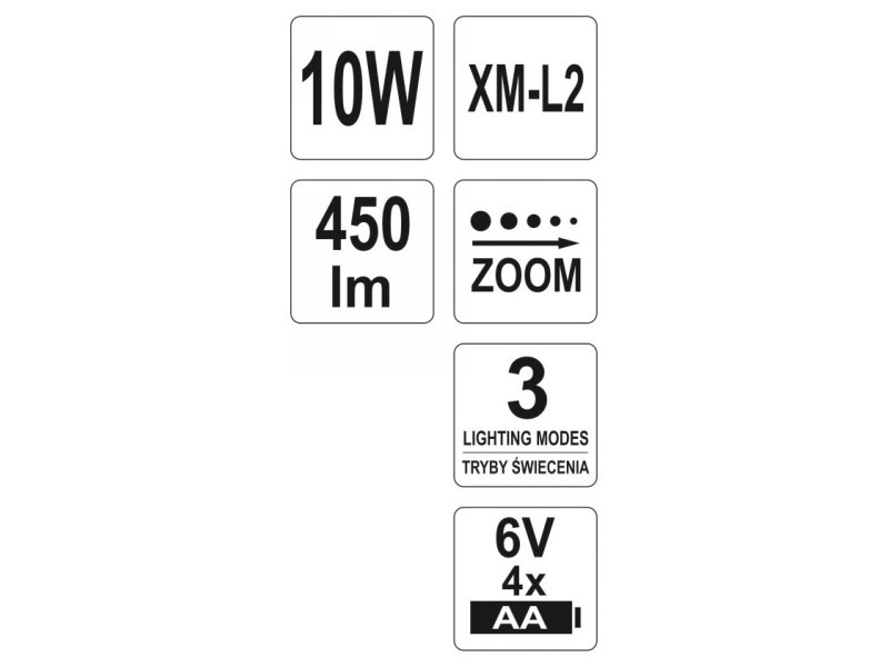 - nagy teljesítményű 10 W-os LED, akár 450 lm fényáramú fényforrással .