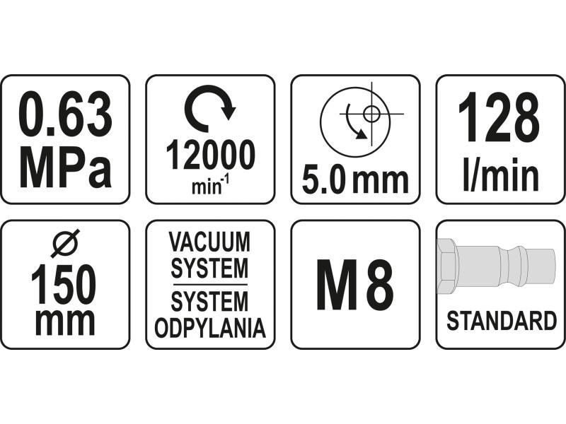 Sűrített levegővel működő professzionális excentrikus csiszológép. A közvetlenül a tárcsákra felvitt csiszolóanyagoknak köszönhetően lehetővé teszi a különböző anyagok csiszolását és polírozását. Autószervizben és az iparban használják.
