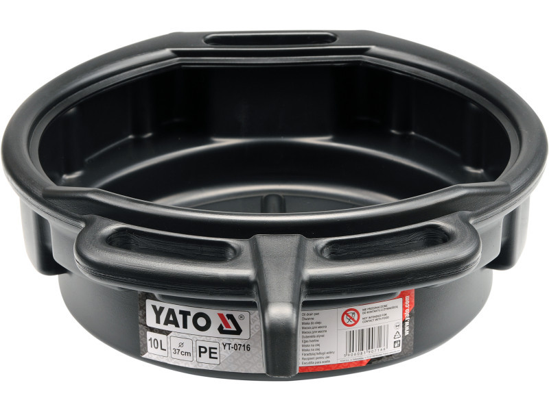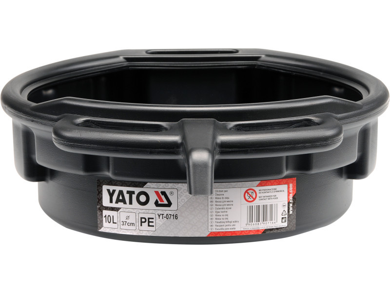 Tál a használt olaj vagy más üzemi folyadékok kiöntésére. Polipropilénből készült, fogantyúval és kontúros kiöntőfelülettel.Űrtartalom: 10 liter.