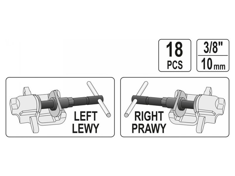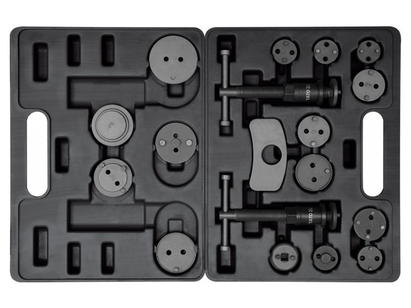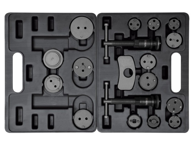 A szerszám két csavarprésből - egy jobb és egy bal oldali -, valamint egy tárcsakészletből áll, amely lehetővé teszi a dugattyúk cseréjét az autók széles körében.