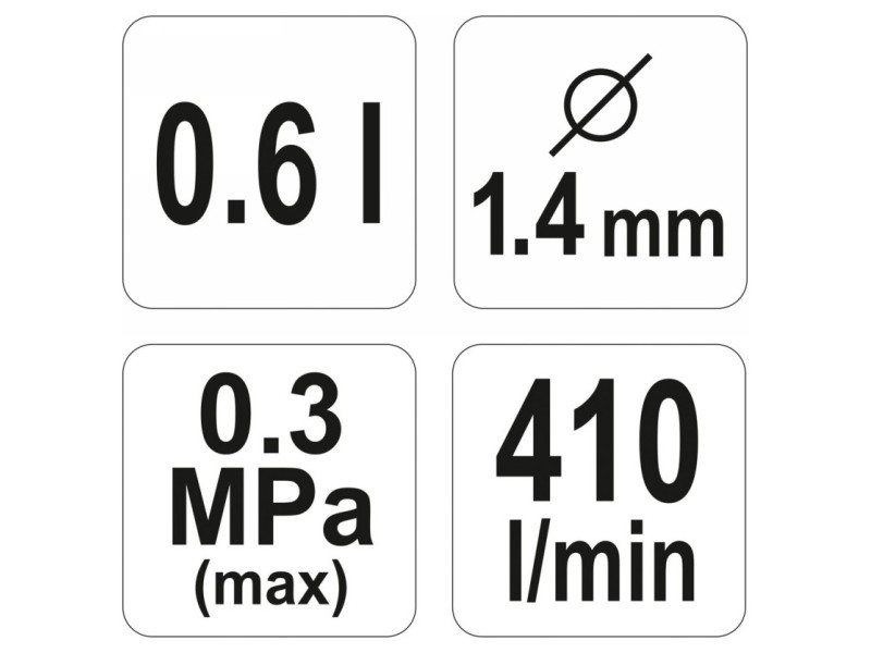 | A levegőellátó tömlő belső átmérője | 3/8" (9,5 mm) |