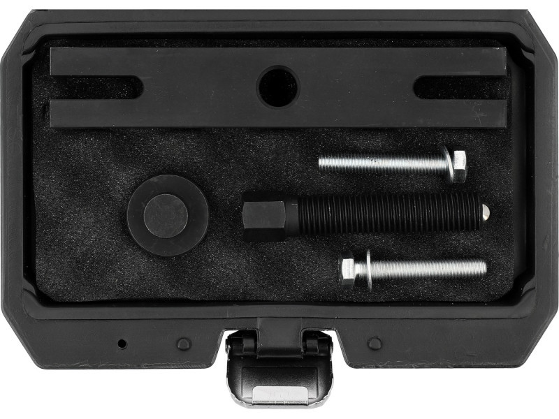 Professzionális kerekeszterelő, melyet a Ford 2.0 EcoBlue TDCi motorok első főtengely kerekének leszerelésére terveztek. A szerszám lehetővé teszi a kerekeszterelés biztonságos elvégzését, hogy hozzáférjünk a vezérműrendszerhez, amely szükséges a vezérműszíj cseréjéhez és az elülső motortérben végzett szervizmunkákhoz.