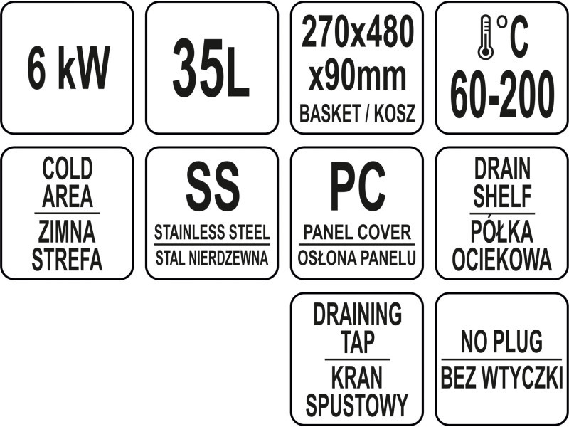 YATO GASTRO Asztali olajsütő 26,5 liter 6000 W leeresztőcsappal