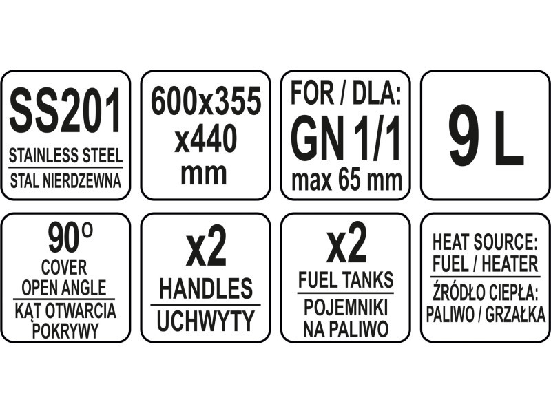 YATO GASTRO Chafing edény 9 liter roll top GN 1/1