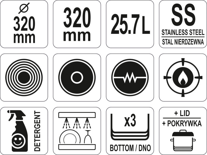 YATO GASTRO Fazék fedővel 25,7 liter 320 x 320 mm inox
