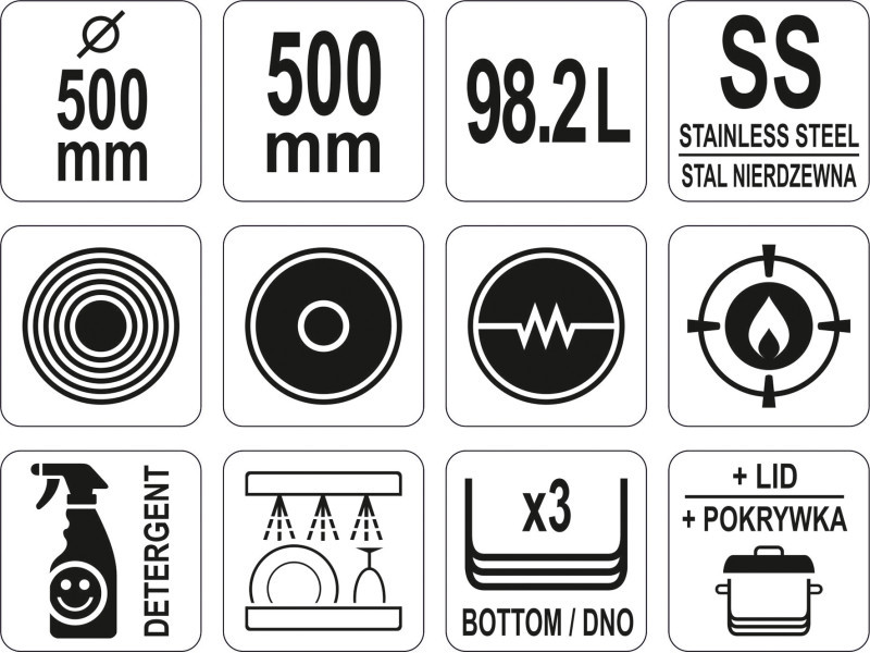 YATO GASTRO Fazék fedővel 98,2 liter 500 x 500 mm inox