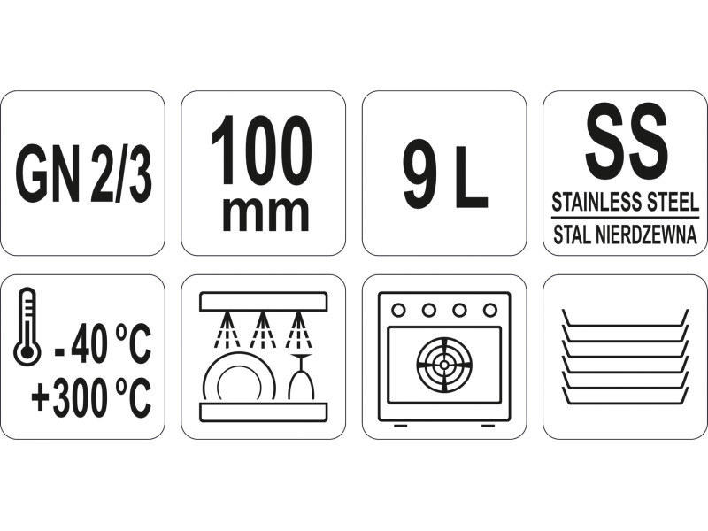 YATO GASTRO Inox betét 100 mm GN 1/2